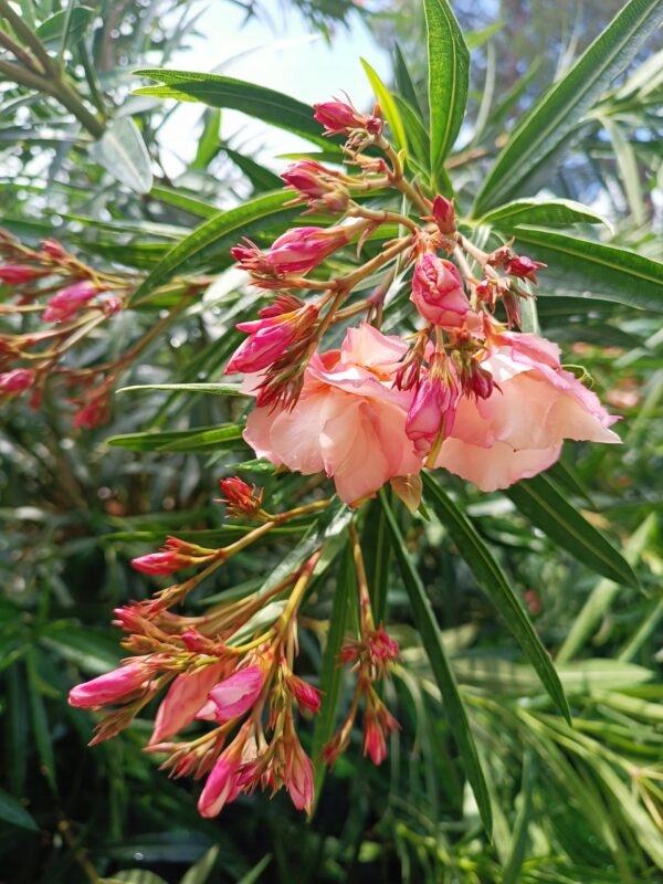 Oleander to roślina pojemnikowa pochodząca znad basenu Morza Śródziemnego. Kwitnie od VI do przymrozków. .